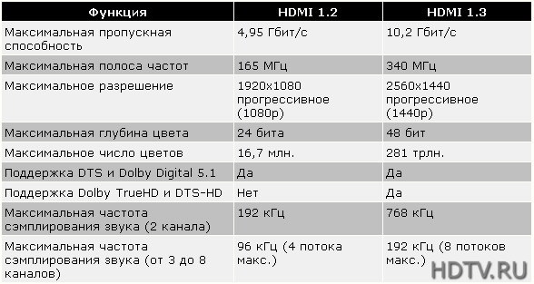 Интерфейс HDMI постоянно развивался. Сегодня насчитывается уже несколько версий с разными номерами. Первая версия HDMI 1.0 появилась ещё в 2002 году. Самая последняя HDMI 1.3 была утверждена в июне 2006. Каждая версия использует одни и те же аппаратные спецификации и кабель, но отличается увеличенной пропускной способностью и типами информации, которые можно передавать через HDMI. Например, HDMI 1.0 поддерживает максимальную скорость 4,9 Гбит/с, а HDMI 1.3 - уже 10,2 Гбит/с.