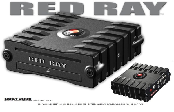 Компания RED также анонсировала свой RED RAY оптический привод, который будет проигрывать 4К видео RED ONE (представленной раннее), 3К видео с новой Scarlet, обычные форматы HD на RED дисках и RED Express media, а также родные файлы формата R3D RAW на CompactFlash. 5К видео с новой камеры EPIC поддерживаться не будет.