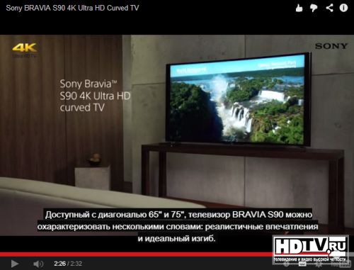 - 4K Ultra HD телевизор Sony BRAVIA S90 с изогнутым экраном (видео)