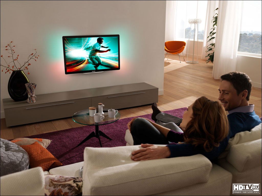 Ambilight – для Philips это одна из ключевых технологий и большинство моделей среднего и верхнего диапазонов оснащаются такой системой светодиодной подсветки окружающего пространства позади телевизора. Световой фон изменяется в соответствии с отображаемой на экране картинкой.
