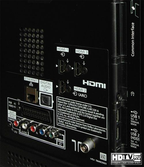 3 x HDMI, 2 x USB, слот CI, компонентный вход, SCART, антенный вход, LAN и аудио выходы