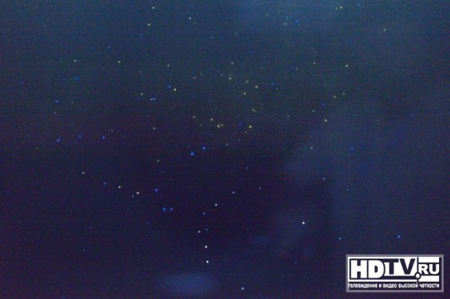Наш последний тест был выполнен с полностью черным экраном, 0 IRE. При этом удалось обнаружить около 50 «убитых» субпикселей, белых, синих или зеленых (без красного цвета). Они очень маленькие, как звезды в ночном небе. Чтобы продемонстрировать их вам, мы сделали фото с темного экрана включенного телевизора с помощью Nikon D8000 с объективом 50 мм f/1.8, при 4 секундной выдержке.