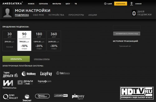 Фильмов здесь действительно много, а главное, что их количество регулярно растет. Следует учитывать, что некоторые ленты доступны для бесплатного просмотра, но для полного доступа к сервису потребуется регистрация. На момент публикации данной статьи на сайте AMEDIATEKA действует привлекательная акция «10 дней за 10 рублей». Базовый доступ на 30 дней стоит 300 рублей. При оплате больше чем на три месяца действует гибкая система скидок. Способов оплаты полно – можно активировать аккаунт, не вставая с дивана. Примечательно, что даже для регистрации в системе не нужно загружать официальный сайт с ПК – создать аккаунт можно с помощью приложения.