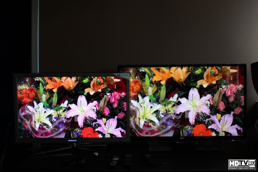 У телевизоров разный характер цветовоспроизведения. LG LX9500 имеет яркую картинку с повышенным уровнем яркости, что важно для просмотра в 3D режиме днем. Однако, у Samsung C8000 есть возможность увеличить уровень подсветки через меню в 3D режиме.