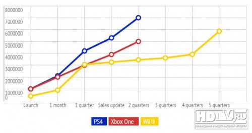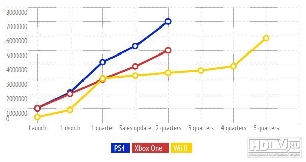 За первые шесть месяцев продаж новых игровых консолей PlayStation 4 и Xbox One объем реализации более чем вдвое превысил аналогичные показатели для прежних моделей PS3 и Xbox 360 в таком же 6-месячном периоде. PS4 продолжает опережать конкурента из США.